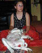 Wir haben mit unserer Rika einen absoluten Schatz bekommen. Sie ist ein allround-Talent, wie an den Photos unschwer zu erkennen ist. Unser Hund muss die Grätsche zwischen einer turbulenten Familie, einem jagdeifrigen Hundeführer, einer bewegungsaktiven Frau und Kindern machen, die durchaus nicht erfreut sind, wenn die Ritter verschleppt oder der heiß geliebte Nieten-Gürtel zerkaut werden. Sie schafft es! Manchmal allerdings ist sie das beneidetste Familienmitglied, wenn alle morgens aus dem Haus flüchten und sie sich in ihre Muschel zurückziehen kann und weiterschlafen. Mit der Erziehung sind wir sicher noch nicht so weit, wie die gut trainierten Geschwister der Familie Silvanson - und unser Schätzchen ist auch manchmal sehr geneigt, doch immer mal wieder auszuprobieren, ob denn die hart erkämpften Regeln von gestern auch heute wirklich noch gelten?! Spannend war die erste Hitze - sicher auch wegen unserer Unerfahrenheit. Aber da bis heute noch keine Hundekinder angekommen sind, wird es wohl nicht falsch gewesen sein (Simon hat ihr auch immer mit hoch erhobenem Zeigefinger gedroht: "Rika, Du darfst erst Kinder haben, wenn Du auch einen Mann hast!") Da musste das ja klappen. Leider habe ich die Verkleidungsbilder nicht gefunden, denn Rika geht auch sehr gut als feine Dame mit Hut und Tüllröckchen durch, oder als Pirat. Im April wird sie die Hundegebrauchsprüfung machen (oder wie auch immer die heißt) und dann beginnt der Ernst des Lebens. Wir können nur immer wieder DANKE sagen für diesen wunderbaren Hund, der durch die frühe Prägung im Hause Kriege-Silvanson mit einer Ruhe und Geduld all unseren Ansprüchen versucht gerecht zu werden und immer zart und gutmütig bleibt. Ein Abenteuer zwar, aber es war die richtige Entscheidung! Ganz herzliche Grüße von der Rika-Familie |